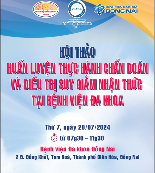 Ngày 20/7/2024, Bệnh viện Đa khoa Đồng Nai đã tổ chức Hội thảo Huấn luyện thực hành chẩn đoán và điều trị suy giảm nhận thức, do Hội Bệnh Alzheimer và Rối loạn Thần kinh Nhận thức Việt Nam đứng ra tổ chức